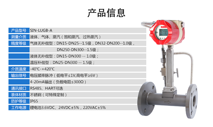 LUGB-SIN-A渦街流量?jī)x表廣泛用于供熱公司、熱力公司、化工行業(yè)等行業(yè),對(duì)過(guò)熱蒸汽、飽和蒸汽、壓縮空氣和一般氣體、水和液體的計(jì)量和控制。