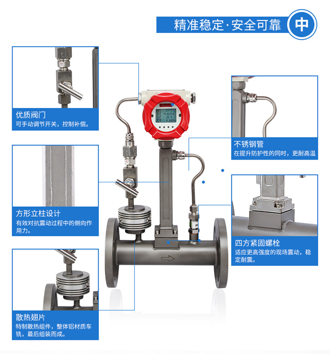 LUGB-SIN-A渦街流量?jī)x表廣泛用于供熱公司、熱力公司、化工行業(yè)等行業(yè),對(duì)過(guò)熱蒸汽、飽和蒸汽、壓縮空氣和一般氣體、水和液體的計(jì)量和控制。加厚本體,可有效避免現(xiàn)場(chǎng)管道振動(dòng)帶來(lái)的數(shù)據(jù)波動(dòng)和誤差。多用于高溫場(chǎng)合,例如過(guò)熱蒸汽等工況。