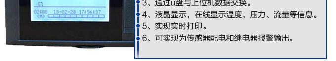 SIN-R200C系列無紙記錄儀是一種高速高性能微處理器和3英寸單色液晶顯示分辨率320*200,對現(xiàn)場各種溫度、壓力、流量、電量等信號實現(xiàn)監(jiān)測、控制和記錄功能。SIN-R200C系列無紙記錄儀可自由組態(tài)輸入標(biāo)準(zhǔn)電流、標(biāo)準(zhǔn)電壓、熱電偶、熱電阻、頻率等信號,可實現(xiàn)為傳感器配電和繼電器報警輸出,并且可通過U盤或通訊方式與上位機(jī)進(jìn)行數(shù)據(jù)交換。無紙記錄儀本身具有實時數(shù)據(jù)顯示畫面、曲線顯示畫面以及棒圖數(shù)據(jù)顯示畫面,同時,可以與微型打印機(jī)相連接,實現(xiàn)現(xiàn)場打印功能,與聲光報警器連接,實現(xiàn)現(xiàn)場聲光報警功能。