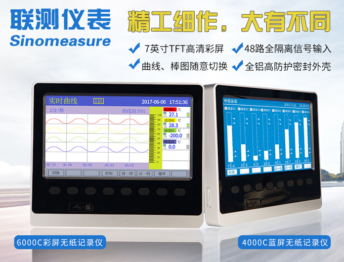 SIN-R6000C系列彩色無紙記錄儀48路(萬能輸入(可組態選擇輸入:標準電壓、標準電流、熱電偶、熱電阻、頻率、毫伏等)??蓭?8路報警輸出,12個變送輸出,RS232/485通訊接口,以太網接口,微型打印機接口和USB接口,SD卡插座;可提供傳感器配電;具有強大的顯示功能,實時曲線顯示,歷史曲線追憶,棒圖顯示,報警列表顯示。人性化的外觀設計、良好的功能體現、可靠的硬件品質、精湛的制造工藝,使SIN-R6000C具有更高的性能價格比。