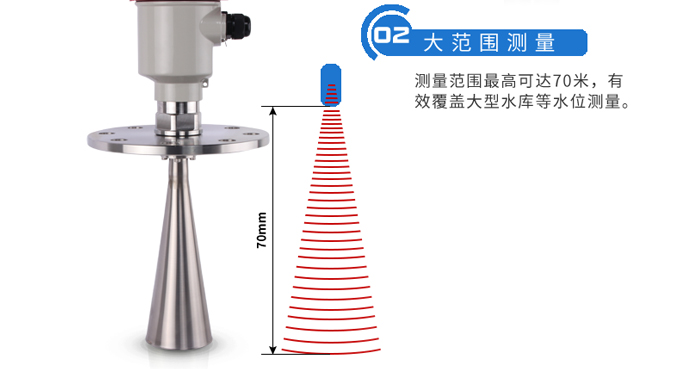雷達液位計天線發射及窄的微波脈沖,這個脈沖以光速在空間傳播,遇到被測介質表面,其部分能量被反射回來,被同一天線接收。發射脈沖與接收脈沖的時間間隔與天線到被測介質表面的距離成正比,多用于水位、料位與化工場合。